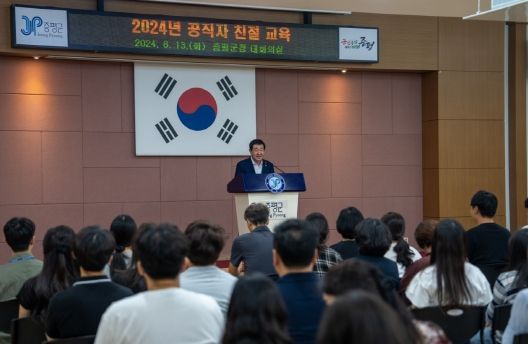 이재영 군수는 “매년 다양한 친절교육을 통해 우리 직원들의 친절 마인드 향상을 도모하기 위해 노력하고 있다”며, “공직자들의 짧은 한마디, 잠깐의 미소와 친절한 표정이 우리 증평군민들에게 오래도록 기억되고 널리 퍼져나갈 수 있도록 앞으로도 민원인 응대 역량 강화를 위해 노력하겠다”고 전했다.