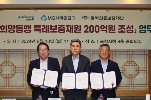 이날 협약식에서는 시와 포항시 새마을금고협의회가 200억 원의 특례보증재원을 조성키로 하고 각 10억 원씩을 출연하기로 했다.