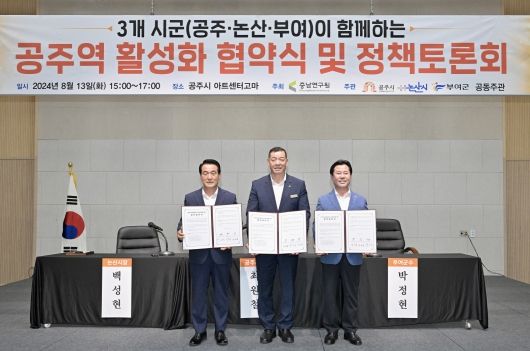이어 “3개 지자체가 충남 남부권의 유일한 고속철도역인 공주역 활성화를 위해 역량을 결집하고 공동 대응하기로 한 만큼 새로운 돌파구를 마련하는 전환점이 되길 바란다”라고 강조했다.