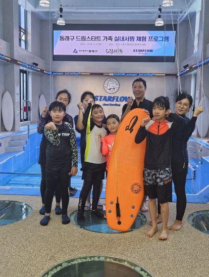 (아름다운교육신문) 부산 동래구는 지난 8일 여름방학을 맞아 드림스타트 아동 가족 10명을 대상으로 실내 서핑 체험 프로그램을 진행했다고 밝혔다.