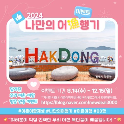 (아름다운교육신문) 해양수산부는 8월 14일부터 12월 15일까지 대국민 방문 인증 이벤트 ‘2024 나만의 어(漁)행기’를 진행한다고 밝혔다.