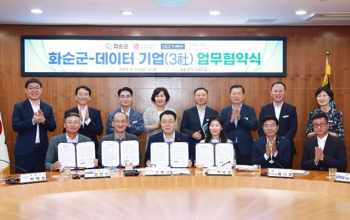 (아름다운교육신문) 화순군은 지난 13일 군청 소회의실에서 ㈜LG유플러스, NICE지니테이타㈜, ㈜티브릿지코퍼레이션 등 국내 최고의 데이터 관련 선도기업 3사와 '도시데이터 기반 화순군 현안과제 해결'을 위한 업무협약을 체결했다고 밝혔다.