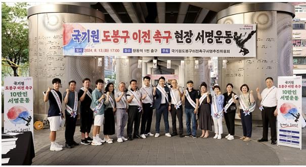 구는 오는 8월 17일까지 집중 서명 기간을 운영함과 동시에 유동 인구가 많은 창동역, 쌍문역, 도봉산 입구 등에서 현장 서명운동을 병행해 10만 목표를 조기에 달성한다는 계획이다.