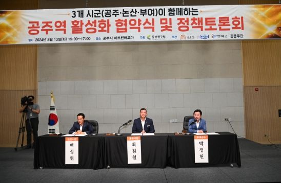 또한 충남연구원 주최로 부여·공주·논산 3개 시군이 공동 주관한 ‘공주역 활성화 정책토론회’도 열렸다. 공주역 활성화 필요성, 이용객 현황 및 여건 분석, 공주역 모니터링 결과를 바탕으로 공주역 수요 확대를 위한 정책 방향, 공동사업 제안 등 전문가 토론이 이어졌다.