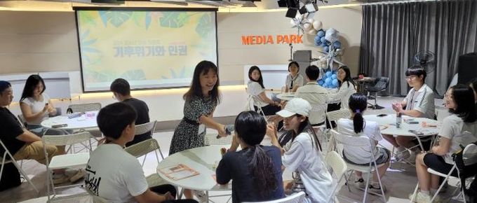 학생들은 기후 위기 관련 영화 ‘개미와 베짱이’를 시청한 후, 기후 위기와 인권의 연결고리와 극복 방안을 주제로 토론하며 기후변화의 현실과 인권 문제 등에 대해 깊이 이해하는 시간을 가졌다.