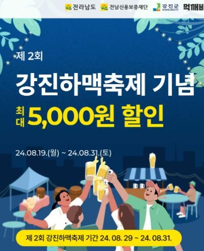 이번 이벤트는 ‘제2회 강진 하맥축제’와 연계해 진행되는 강진 상권 활성화 특별 이벤트의 일환으로, 하맥축제 기간인 8월 29일 목요일부터 8월 31일 토요일까지는 최대 5천원, 그 외 기간 8월 19일 월요일부터 8월 28일 수요일까지는 매일 3천원의 할인 쿠폰이 지급된다.
