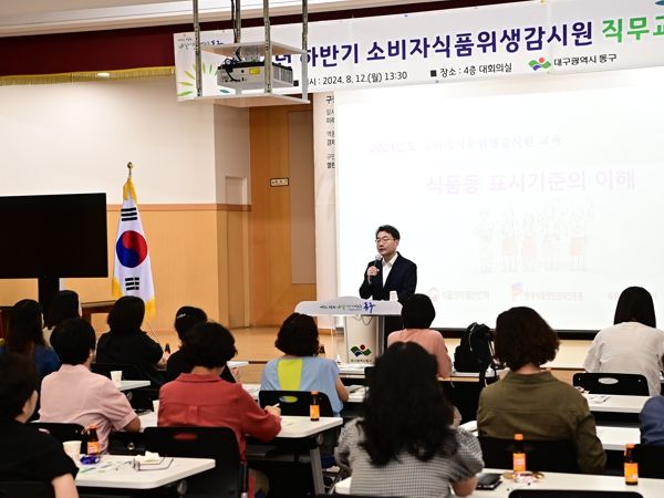 (아름다운교육신문) 대구 동구청 지난 12일 ‘2024년 하반기 소비자 식품위생감시원 정기교육’을 실시했다고 밝혔다.