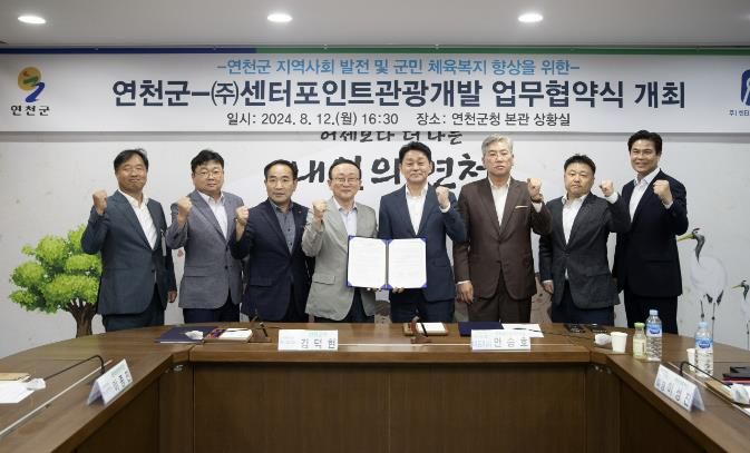 (아름다운교육신문) 연천군과 ㈜센터포인트관광개발은 지난 12일 연천군청 본관 2층 상황실에서 지역사회 발전 및 군민 체육 복지 향상을 위한 업무협약을 체결했다고 밝혔다.