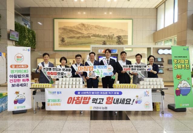 최대호 안양시장도 동참해 직원들에게 폭염으로 지치기 쉬운 요즘 아침밥으로 건강을 챙기자고 독려했다. 박준모 안양시의장, 김민자 NH농협은행 경기본부장 등도 참여해 농가를 돕는 건강한 아침밥 먹기 실천을 강조했다.