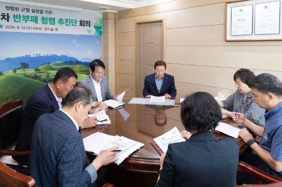 (아름다운교육신문) 함안군은 지난 14일 군수실에서 제1차 반부패 청렴추진단 회의를 열었다. 이번 회의는 기관장의 반부패 의지를 표명하고, 조직 내 청렴 시책 추진 동력을 확보해 내실 있는 반부패 추진 기반을 마련하고자 개최됐으며 단장인 조근제 함안군수를 비롯해 부군수, 국·소장, 기획감사담당관이 참석했다.