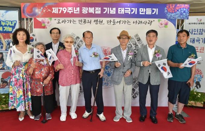 14일 진행된 광복절 기념행사는 “모아가는 민족의 염원, 만들어 가는 나라사랑”이라는 주제로 지난 5일부터 시청 종합민원실에 설치된 대형 태극기에 독립유공자 유족과 김제시민이 다같이 손바닥 도장을 찍는 기념행사를 진행, 광복의 기쁨을 함께 나누는 시간을 마련했다.