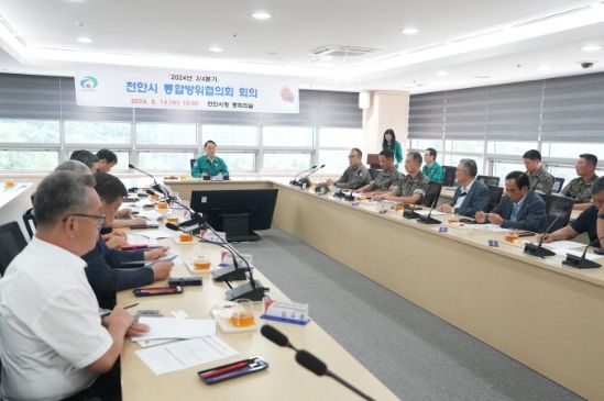 이번 회의는 통합방위협의회 의장인 박상돈 천안시장 주재로 천안시통합방위협의회 운영, 2024 을지연습 및 공습대비 민방공 대피훈련 보고 등 방위태세 강화 방안이 논의됐다.