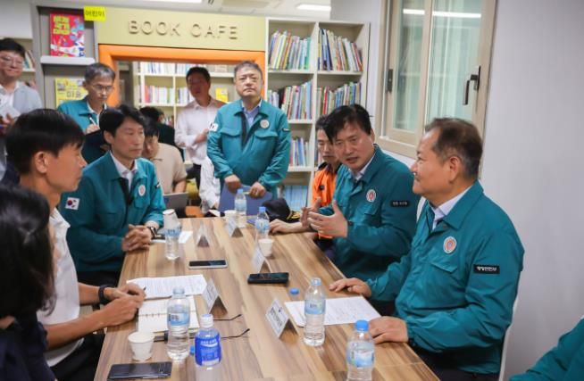 이어서 열린 간담회에서는 서구청장, 아파트 관리소장, 입주자대표 회장 등이 참석한 가운데 피해 주민들을 위로하며 애로사항을 청취했다.