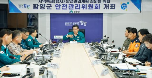 이날 함양군 안전관리위원회에는 함양군과 경찰서, 소방서, 군부대 등 유관기관 단체장이 참여한 가운데 안전사고 없는 행사 운영을 위한 안전 행사계획과 주요 안전관리에 대한 설명, 유관기관 협조사항 등에 대해 논의했다.