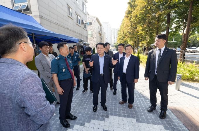 이날 정헌율 익산시장은 익산경찰서장, 시의원, 지역주민과 함께 산책로 현장을 찾았다. 시설물을 점검하고 경찰서 개방주차장과 이어진 동선을 확인하는 등 꼼꼼하게 살폈다.