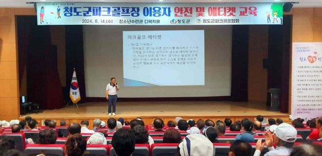 (아름다운교육신문) 청도군은 14일 공공시설사업소 청소년수련관 다목적홀에서 파크골프장 이용자를 대상으로 안전 및 에티켓 교육을 실시했다.