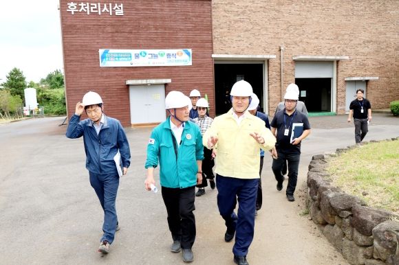 (아름다운교육신문) 김완근 제주시장은 8월 14일 제주시 가축분뇨 공공처리시설을 방문해 운영 현황을 점검하고, 근무자들의 노고를 격려했다.