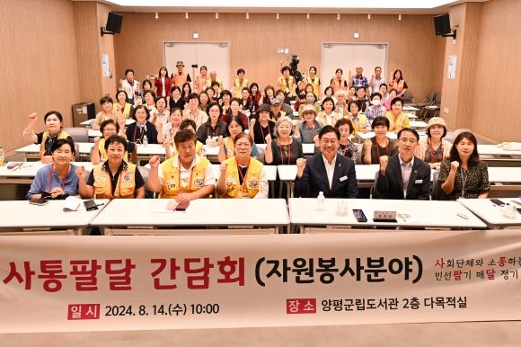 (아름다운교육신문) 전진선 양평군수가 14일 양평군립도서관 2층 다목적실에서 자원봉사 가입 단체 회원 70여명이 참석한 가운데 사통팔달 간담회를 진행했다.