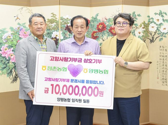 이번 상호기부는 고향사랑기부제도의 활성화와 지역의 상생발전을 도모하기 위한 취지로 양 농협 간의 공감대 형성으로 추진됐다. 점촌농협은 경기도 양평군에 1,050만 원을, 양평농협은 경북 문경시에 1,000만 원을 각각 기부했다.