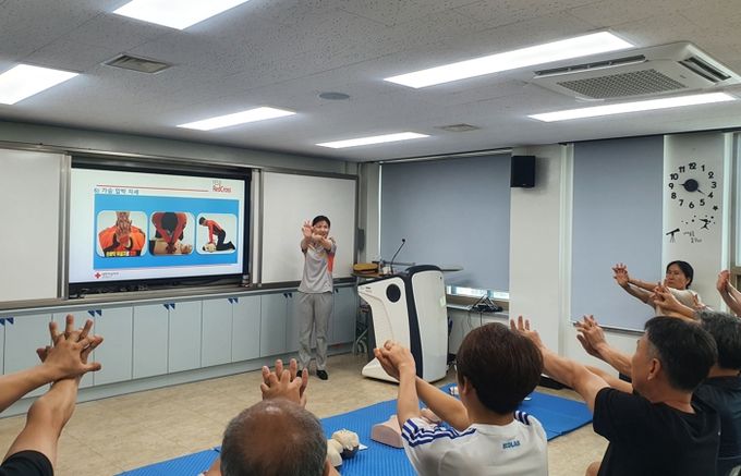 센터는 지난 4월부터 무료 평생교육 상설 프로그램의 일환으로 센터 종사자 및 이용회원 대상으로 응급처치 교육강좌를 개설, △응급처치 이론 △심폐소생술 실습 △자동심장충격기 활용법 등을 가르쳐 왔으며 좋은 평가를 받았다.