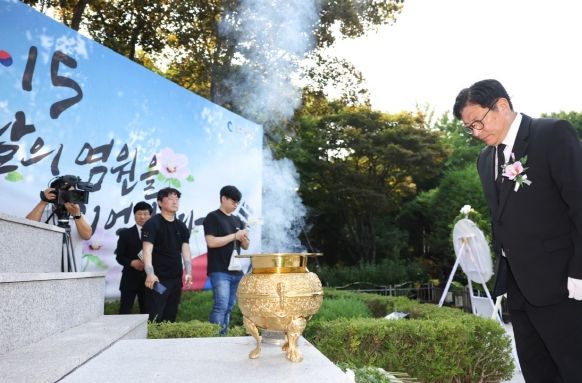 (아름다운교육신문) 도성훈 인천광역시교육감이 제79주년 광복절인 15일 오전 인천 미추홀구 수봉공원내 현충탑을 찾아 참배하고 있다.