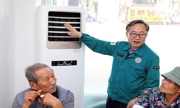 유성훈 구청장은 현장에서 냉방기는 잘 작동되는지 공간을 세심히 살피고, 이용에 불편한 사항은 없는지 어르신들의 의견을 청취하며 소통했다.