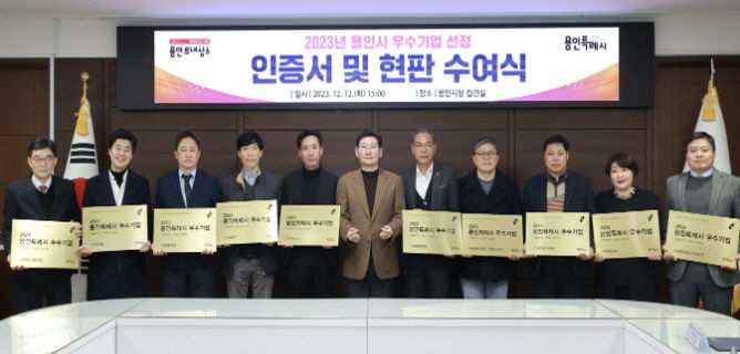 시는 ‘용인시 중소기업의 육성 및 지원에 관한 조례’에 따라 탁월한 경영활동으로 지역 경제 활성화에 기여한 중소기업을 격려하는 차원에서 매년 우수기업을 선정, 다양한 혜택을 제공하고 있다.