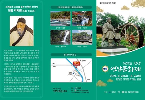 함양연암문화제위원회는 오는 8월 23일과 24일 양일간 안의면 오리숲 일원에서 ‘제21회 함양연암문화제’를 개최한다고 밝혔다.