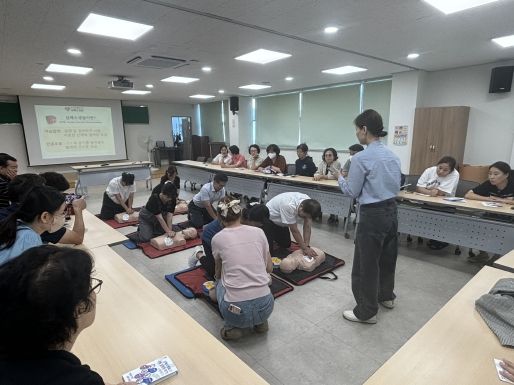 이날 심폐소생술, 소화기 사용법, 화재발생 신고요령, 완강기 사용법 등 생활안전체험 프로그램을 진행했고, 교육에 앞서 폭염 대비 유의사항 전달과 주민이 생활 속에서 위험요소를 직접 발굴․개선하는 안전 한바퀴의 참여를 요청했다.