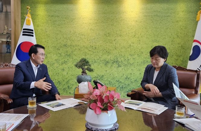 (아름다운교육신문) 이완섭 서산시장은 16일 지역 농축산 발전의 기반을 마련하기 위해 정부세종청사를 방문해 농림축산식품부 장관을 만났다.