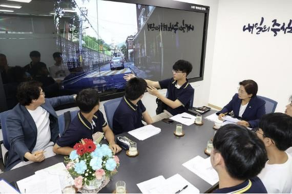 대성고등학교 학생들은 청소년 사회참여 프로그램을 통해 도출된 ‘선일초등학교 주변(갈현로 29길, 33길) 일방통행 운영’을 제안하고자 SNS를 통해 김미경 은평구청장에게 면담을 요청했다. 김 구청장은 이를 흔쾌히 수용하며 만남이 성사됐다.