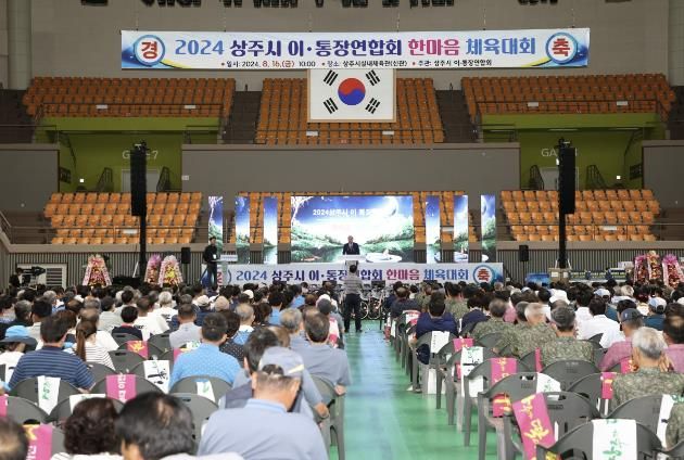 (아름다운교육신문) 상주시 이·통장연합회 한마음 체육대회가 8월 16일 오전 10시부터 상주실내체육관 신관에서 강영석 상주시장을 비롯한 각급 기관·단체장, 24개 읍면동 이통장과 그 가족들 등 1,200명 모인 가운데 성황리에 개최됐다.