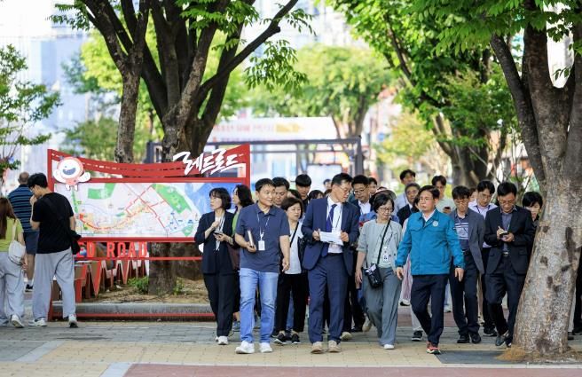 이날 회의에 참여한 박강수 마포구청장과 동장단은 올해 4월 새 단장을 마친 홍대 레드로드의 R1‧R2 구간부터 R7 구간까지 걸으며 시설물을 살피고, 합정역 7번 출구부터 마포새빛문화숲까지 이어지는 합정동 하늘길을 찾아 상권 활성화 방안을 함께 모색했다.