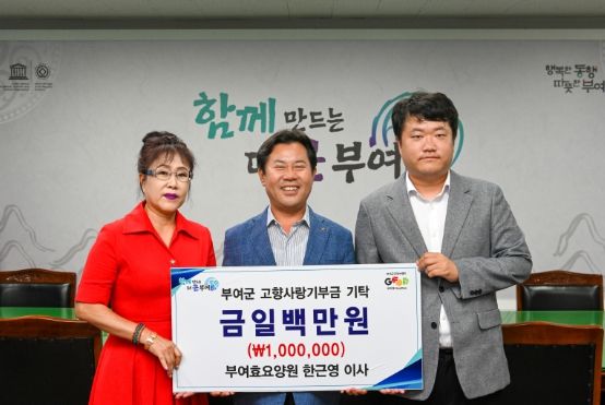 (아름다운교육신문) 부여군은 지난 14일 부여효(孝)요양원(대표 이순자) 한근영 이사가 고향사랑기부금 100만 원을 기탁했다고 밝혔다.