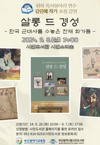이번 연수는 원북 후보도서 ‘살롱 드 경성’의 김인혜 작가가 지금까지 관심을 받지 못했던 한국 근대 미술과 문학의 만남에 대해 알려준다.