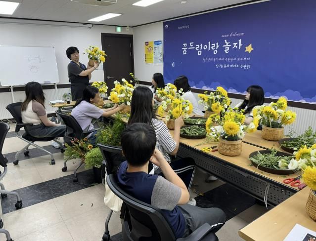 학교 밖 청소년들은 8월부터 11월까지 총 10회 30차시를 참여하며, 라운드 형태 센터피스 기본 형태 이해와 실습, 식물의 이해와 분갈이 등 다양한 플로리스트 활동을 경험할 예정이다.