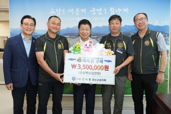 14일 군수 집무실에서 진행된 구매약정과 환담에는 이상근 고성군수와 사단법인 건설기계 개별연명사업자협의회 경남고성지회(이하 건사협) 제영래 회장을 비롯한 관계자들이 참석해 진행됐다.