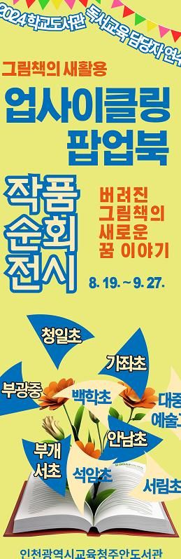 (아름다운교육신문) 인천광역시교육청주안도서관은 2024년 학교도서관 및 독서교육 담당 교직원을 대상으로 진행한 ‘업사이클링 팝업북 활용 연수’의 결과물을 8월 19일부터 9월 27일까지 순회 전시한다.