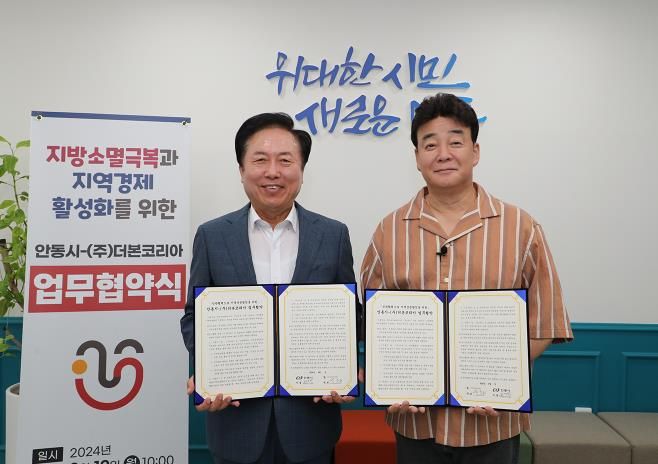 (아름다운교육신문) 안동시와 ㈜더본코리아는 19일'민관협력 지역상생협약 프로젝트'추진을 위한 업무협약을 체결했다.