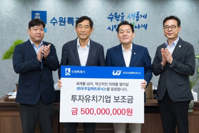 (아름다운교육신문) 수원시가 민선 8기 4호 유치기업인 ㈜우주일렉트로닉스에 투자유치 보조금 5억 원을 지급했다.
