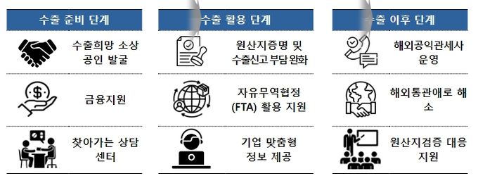 또한, 전문가의 조력을 받기 어려운 소상공인들을 위해 전국 7개 수출입기업지원센터에서 관세청의 기업지원 전담 창구 역할을 수행하며 소상공인들을 밀착 지원할 예정이다.