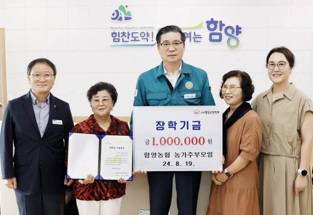 (아름다운교육신문) (사)함양군장학회는 8월 19일 함양농협 농가주부모임에서 군청을 방문하여 지역교육 발전을 염원하는 장학금 100만 원을 기탁하였다고 밝혔다.