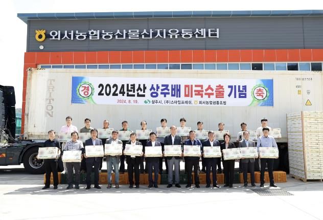 (아름다운교육신문) 상주시 외서농협은 8월 19일 오후 2시 외서농협 농산물산지 유통센터에서 강영석 시장, 지역구 도·시의원, 회원농가, 수출관계자 등 30여 명이 참석한 가운데 올해 재배된 원황배 미국 수출 기념식을 가졌다.