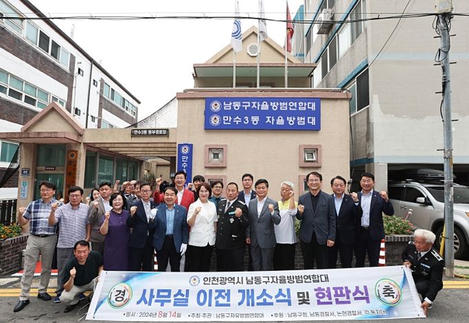 (아름다운교육신문) 인천시 남동구 자율방범연합대는 최근 동부경로당 3층(백범로 214번길 49)에서 사무실 이전 개소에 따른 현판식 행사를 진행했다고 20일 전했다.