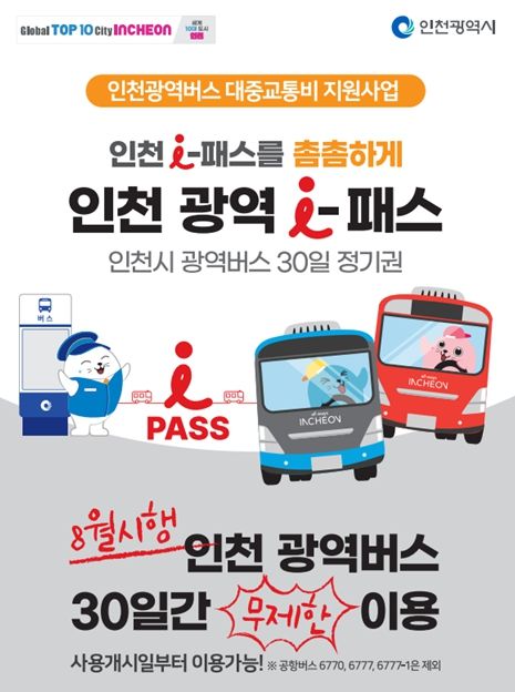 (아름다운교육신문) 인천광역시는 8월 26일부터 인천시 광역버스를 30일간 무제한 이용할 수 있는 ‘인천 광역 I-패스’ 사업을 시작한다.