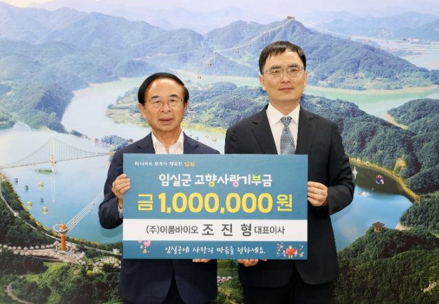 (아름다운교육신문) ㈜이룸바이오 조진형 대표이사가 지난 19일 임실군에 고향사랑기부금 1백만원을 기탁했다.