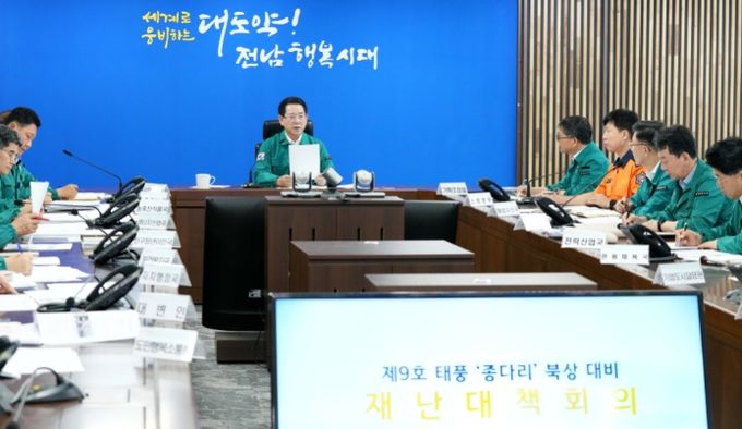(아름다운교육신문) 김영록 전라남도지사는 20일 재난종합상황실에서 실국장, 시군 부단체장 등과 함께 제9호 태풍 ‘종다리’ 북상 대비 재난대책회의를 열어 해수면 상승에 따른 해안가를 비롯한 취약시설 점검 등 선제적 대응을 지시했다.