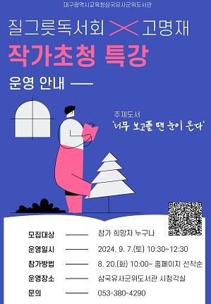(아름다운교육신문) 삼국유사군위도서관은 오는 9월 7일 오전 10시 30분, 도서관 시청각실에서 고명재 작가를 초청해 특강을 운영한다.