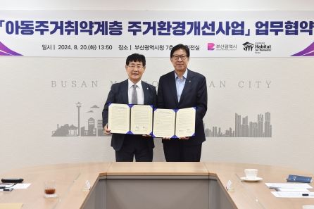 (아름다운교육신문) 부산시는 오늘(20일) 오후 1시 30분 시청 국제의전실에서 사단법인 한국해비타트와 함께 '아동주거취약계층 주거환경개선사업' 추진을 위한 업무협약을 체결한다고 밝혔다.