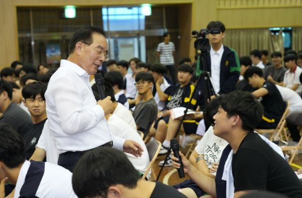 (아름다운교육신문) 하윤수 부산광역시교육감이 20일 오후 3시 30분 광명고등학교에서 1 부터 3학년 309명을 대상으로 5대 폭력·비행 근절과 예방을 위한 법교육 특강을 하고 있다.